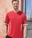 V-neck shape allows extra comfort at the neck and is positioned not too high or low. The BIZ COOL™ performance fabric has extra stretch for optimum active comfort. Grid mesh underarm and side panels for added ventilation and air flow.